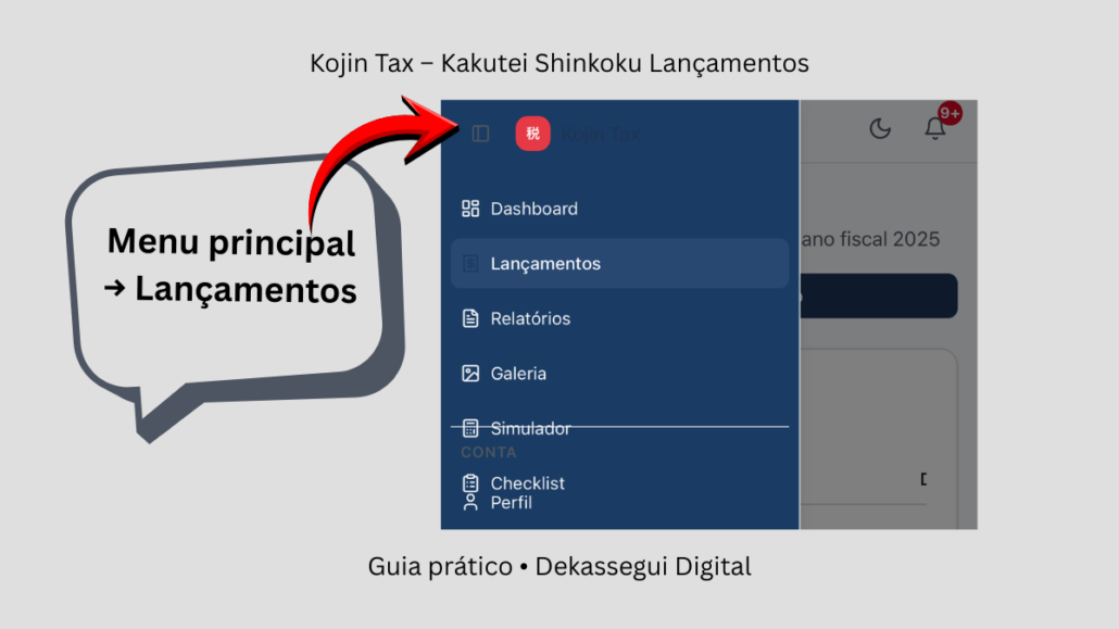 É nele que está o coração do Kojin Tax: a área de Lançamentos.