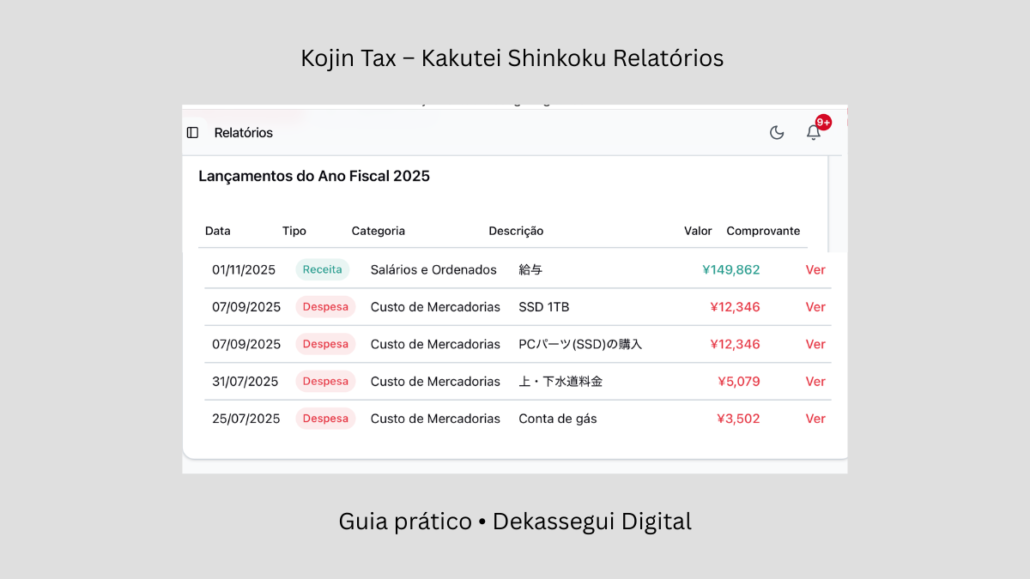 Aqui você vai entender o que é o Kakutei Shinkoku, quem precisa declarar e, principalmente, como usar o Kojin Tax como apoio para organizar receitas, despesas e documentos ao longo do ano — com clareza, controle e consciência fiscal.