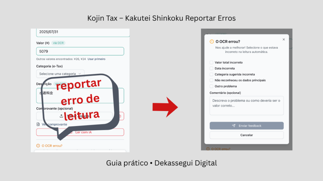 Quando isso ocorre, o usuário pode clicar em “O OCR errou?” e reportar: